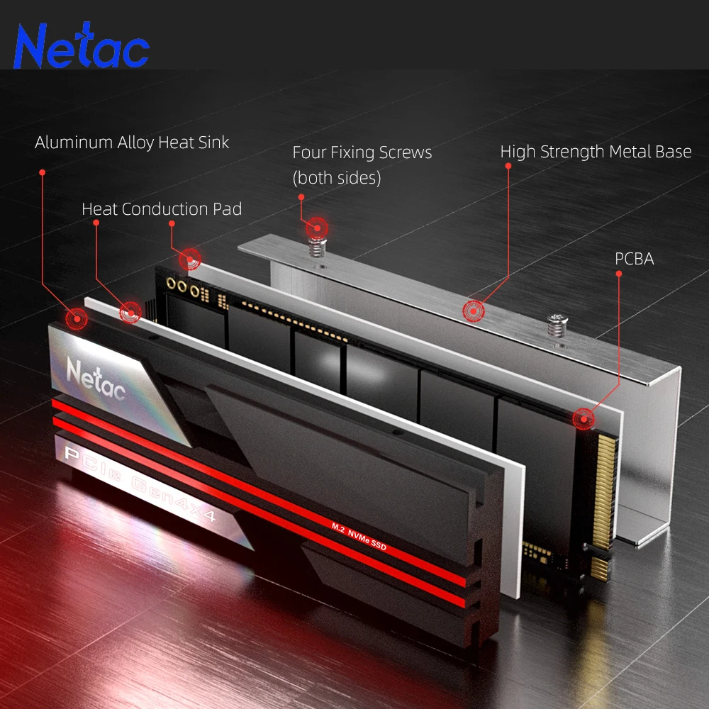 2025 New 7+ Netac M2 SSD 1tb SSD M.2 NVME Hard Disk PCIe 4.0×4 HD 1TB M2 2280 Internal Solid State Drive with Heat Sink for PC