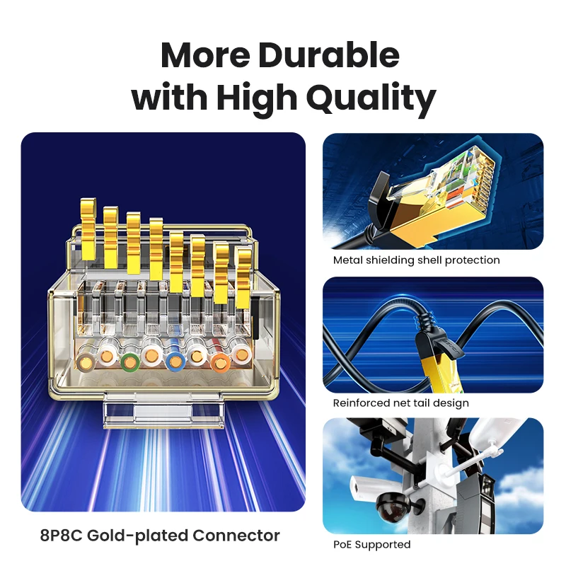 UGREEN Cat 7 Ethernet Cable is made with 100% pure copper core and gold-plated connector, greatly improve the stability and durability of the network cable.