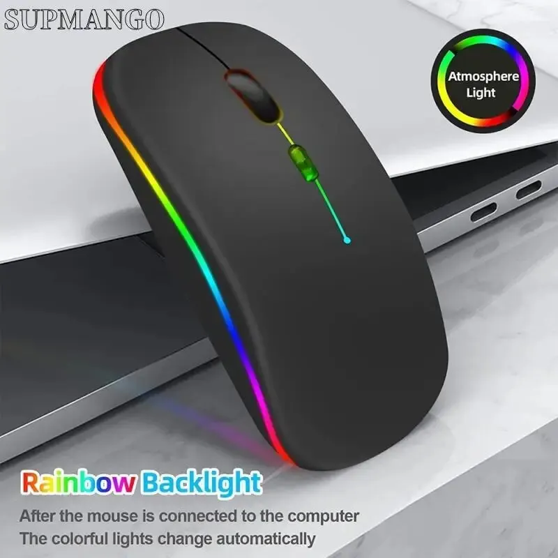 Wireless Mouse Rechargeable Silent LED Backlit Mice PC Laptop Computer Mous 2.4Ghz Receiver Bluetooth Dual Mode Optical Mice